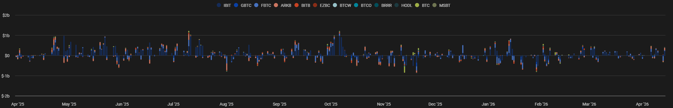 Figure 4: Bitcoin ETF Flows, Daily Bars; Source: The Block