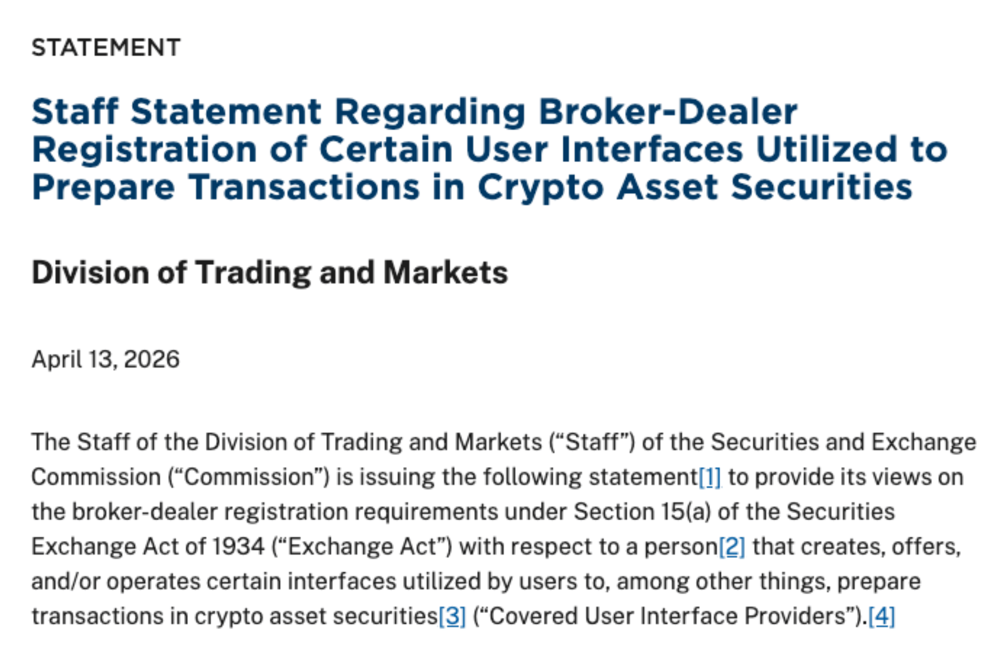 Not for much longer. A new SEC staff statement makes clear that if users hold their own keys and control their own transactions, the interface is software, not a financial intermediary.