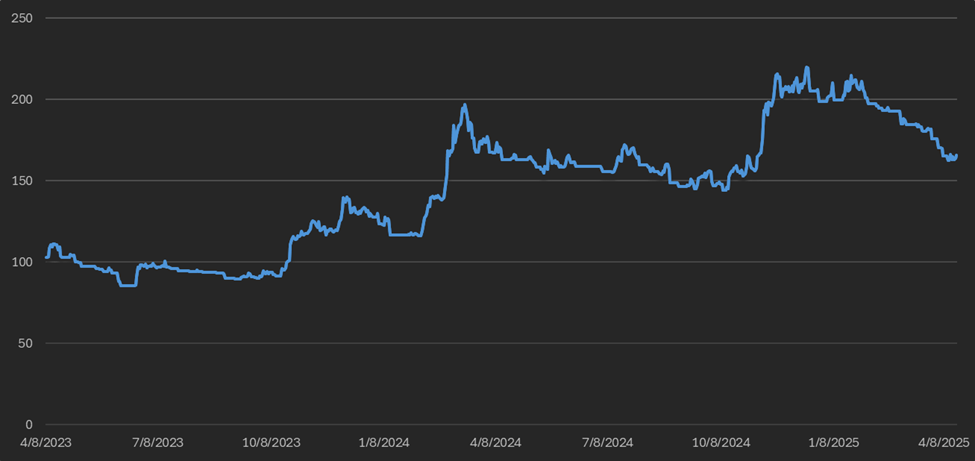 Canada reversed its retaliatory tariffs last week, leaving China as the sole respondent. The current U.S. tariff rate on Chinese goods stands at 145%, with China's counter-tariff at 125%. At these levels, trade volumes are unlikely to shift further, as tariffs become functionally prohibitive. In response, China has introduced non-tariff barriers, including bans on U.S. films and restrictions on rare earth exports.