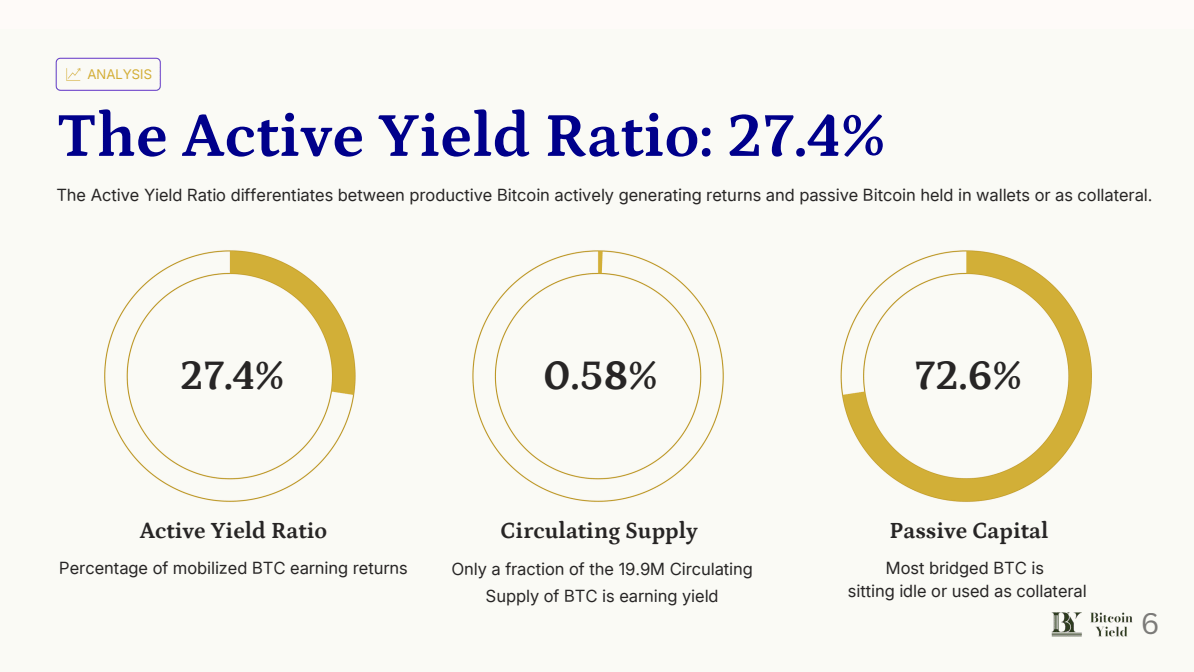 Bitcoin, by contrast, earns nothing. Despite being a $2T+ asset class, less than 1% of BTC is deployed into yield-generating structures.