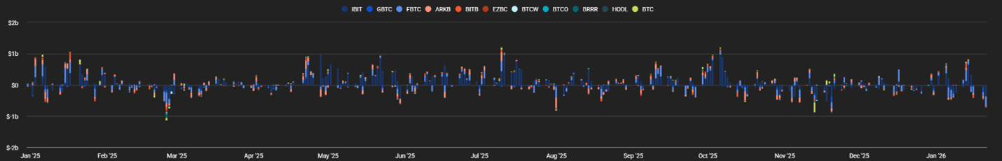 Net outflows totaled $1.615B. Cumulative net inflows since launch have surpassed $56.6B, with total ETF assets at $126B, representing roughly 6.5% of Bitcoin’s market cap.