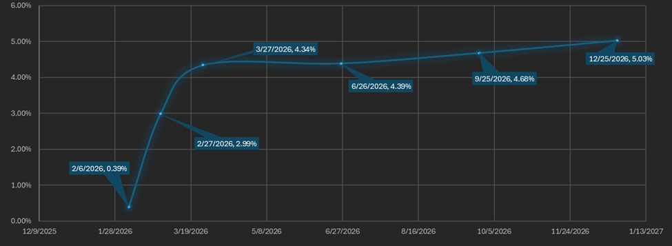 The futures curve is in normal contango, with the front month (February 27) trading below the back month and later maturities. The spread between the lowest and highest yielding maturities widened to 4.63%, driven by basis compression in the front two maturities.