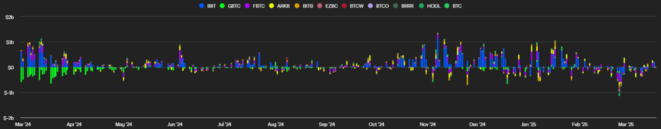 Net inflows since Friday, March 14, totaled $702.5 million, marking a sharp reversal from last week’s $1.272 billion net outflow. Bitcoin ETFs have now ended a five-week streak of outflows.