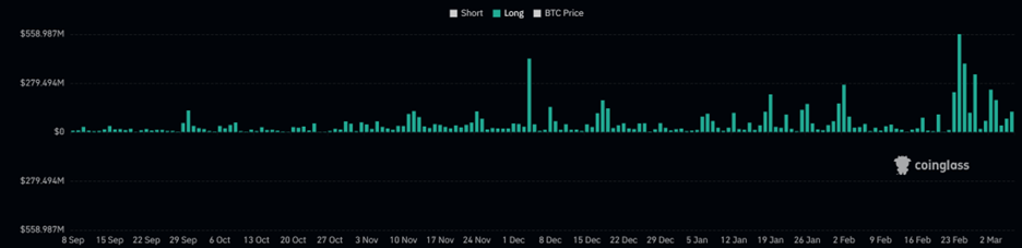 [Figure 3: Bitcoin Long Liquidations; Source: Coinglass]