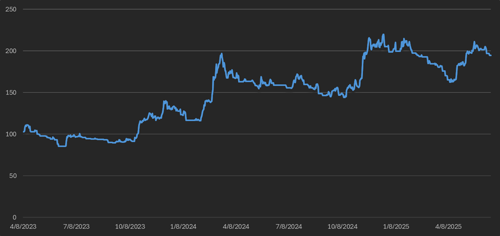 On June 18th, the Federal Reserve held its fourth FOMC meeting of the year. Powell did not cut rates nor announce any reduction in quantitative tightening (QT) from the $5 billion level set at the March meeting. The meeting was largely uneventful, with Powell reiterating that the current rate level provides flexibility if the economy slows. He noted ongoing uncertainty about whether any rate cuts will occur this year. The December SOFR futures market continues to price in a 50 basis point (bp) cut by year-end, unchanged since the tariff announcements earlier this year.