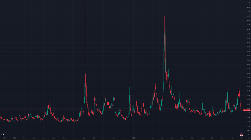 Figure 8: VIX, Daily Candles; 2 Years
