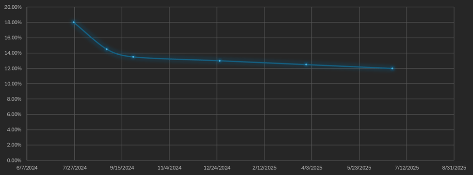 [Figure 6: Example Bullish Futures Curve; Maturity Date, APR %]