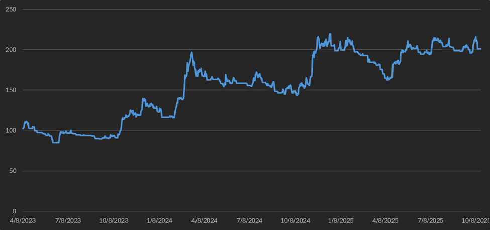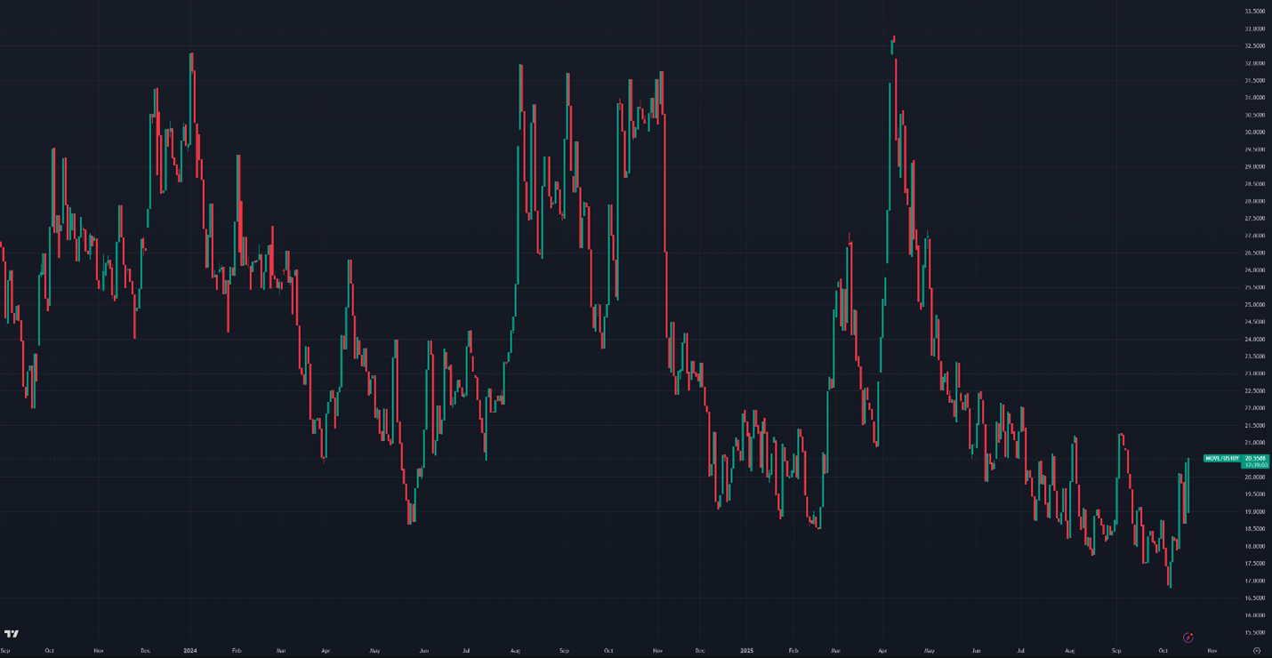 Figure 9: Move Index/US10Y, Daily Candles; 2 Years