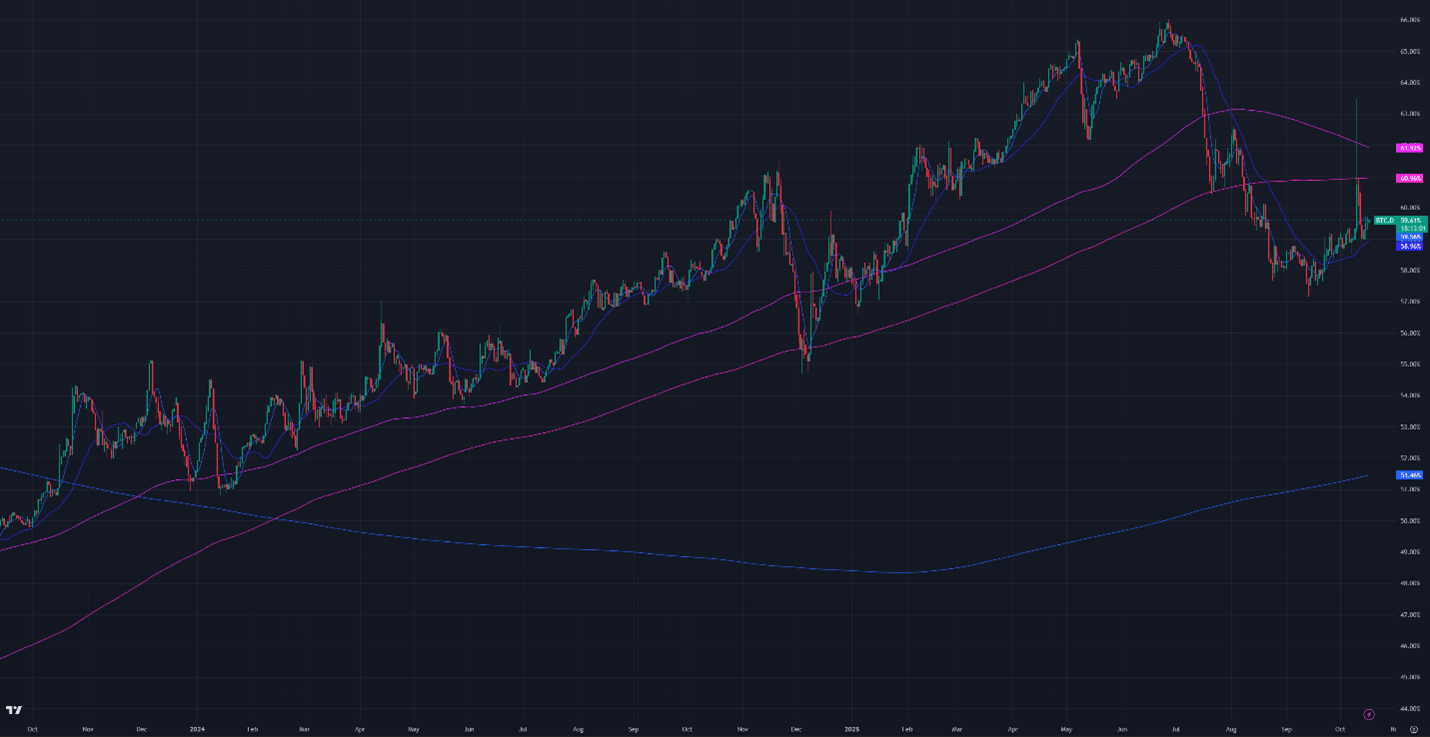Figure 3: Bitcoin Dominance, Daily Candles, & Moving Averages; 2 years