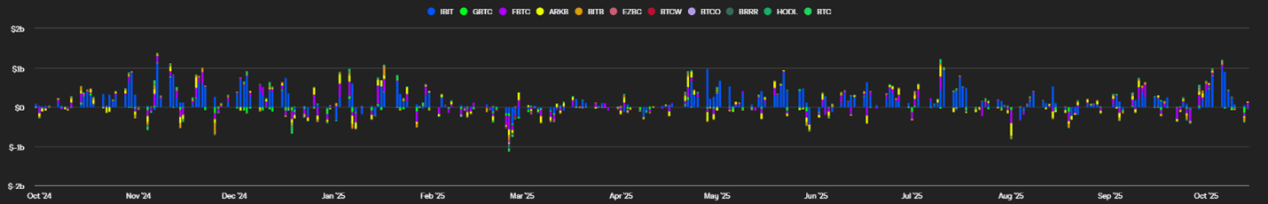 Figure 5: Bitcoin ETF Flows, Daily Bars; Source: The Block