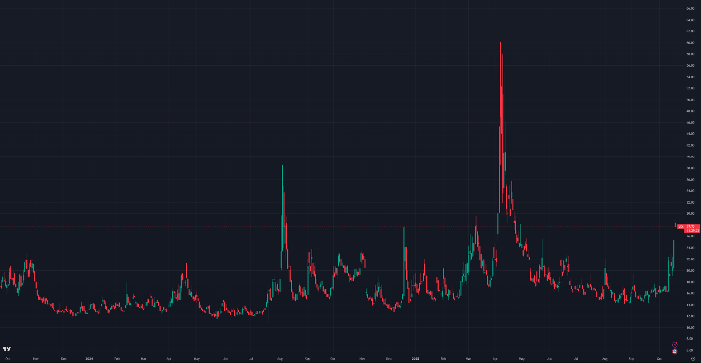 Figure 8: VIX, Daily Candles; 2 Years