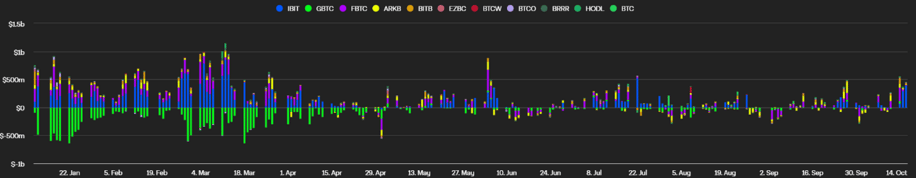 [Figure 2: Bitcoin ETF Flows; Daily Bars; Source: The Block]