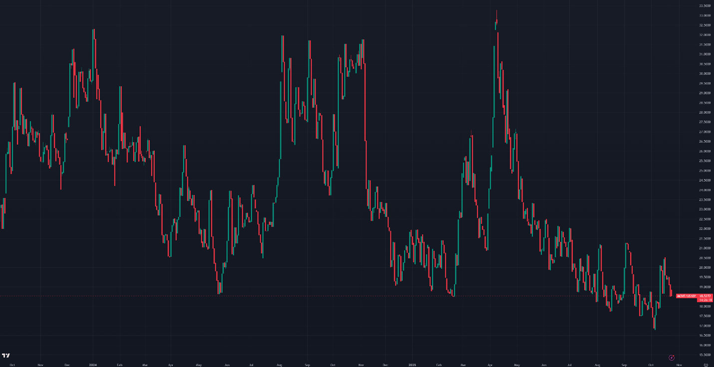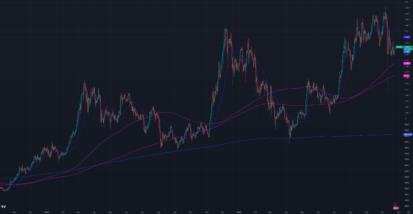 The October 10th liquidation event was contributed to by a potential tariff on China by President Trump. The announcement was issued after the US traditional market closed. President Trump has since stated he is willing to talk to President Xi about the export caps at the APEC forum on October 31st.
