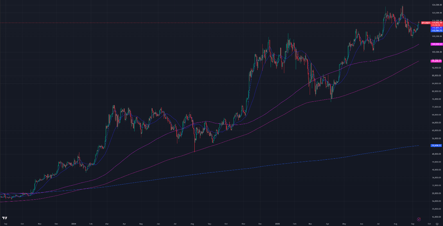 Bitcoin activity was muted this week, even as equities and some altcoins soared to all-time highs. Bitcoin holds a range between $120,000 and $110,000, the previous range high.